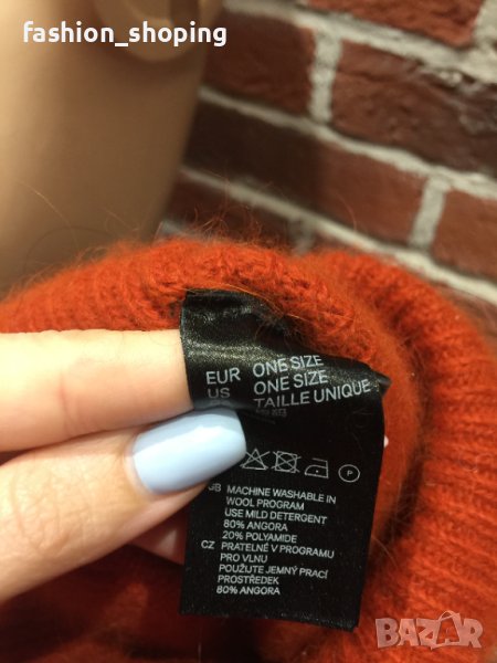 Невероятна мека и пухкава шапка на Х§М. Мекотата й се дължи на плетивото-ангора, която е отличен изолатор на студа и топли много. Цветът е наситено оранж, на мига създава настроение и освежава облеклото. С подходящи, съчетаеми с оранжевото цветове на палто би стояла страхотно.