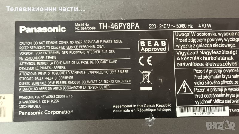 Panasonic TH-46PY8PA със счупен екран-TNPH0763 1 A TXN/A1BQUE/TNPA4658 1 SS/TNPA4657 /MD-46SU11L2N
