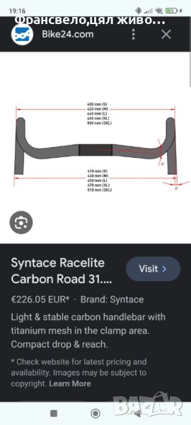 Карбоново шосейно кормило за велосипед колело syntase racelite 2 → Обява 43202346
