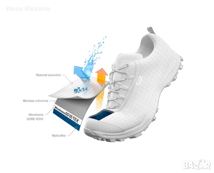 Освен това има водоустойчива защита от Gore-Tex и подметка с високо сцепление, която ви дава стабилност и комфорт при изкачване или спускане под всякакъв ъгъл.