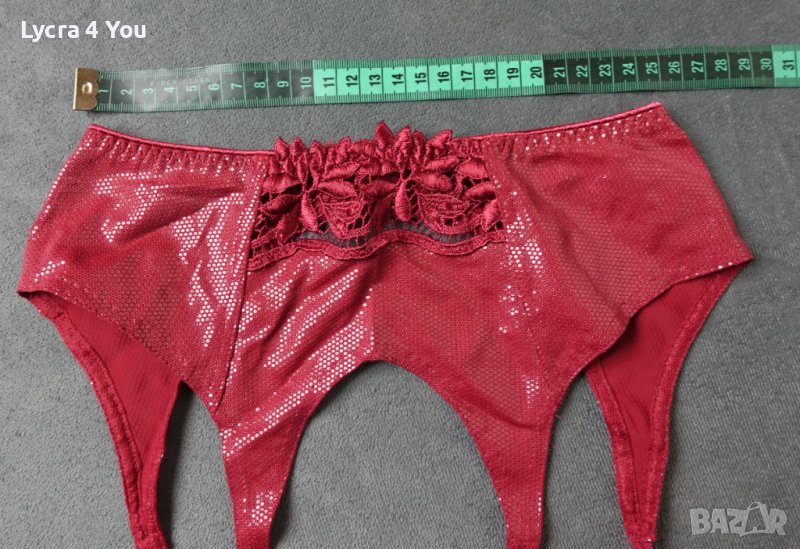 Felina - блестящ колан с жартиерени коланчета. Визуално имитира 'люспеста кожа', или мини пайети, но на макро снимките и погледнат от близо, се вижда, че само имитира този бляскъв ефект (и няма нито 'люспи', нито пайети).
