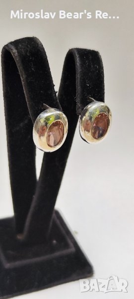 Сребърни обеци с естествен розов кварц - кабушон фасет → Обява 43204575