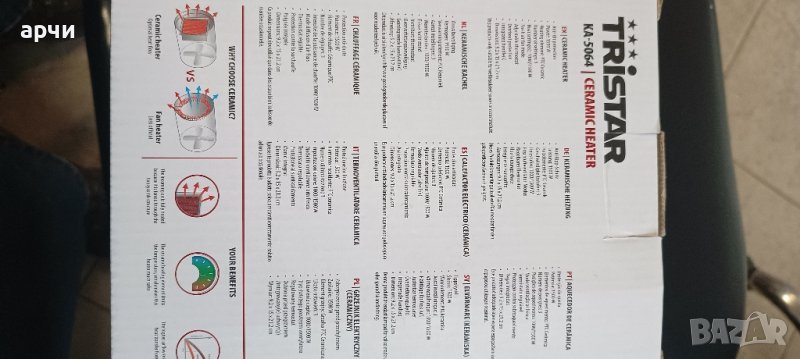 Керамичният нагревател Tristar KA-5064 е идеален източник на топлина и надежден приятел, който ще ви придружава през зимата, но и през по-хладните есенни дни.
