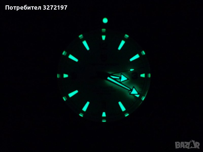 • Светещи стрелки: Стрелките на часовника светят в тъмното, което улеснява разчитането на часа дори при слаба светлина.