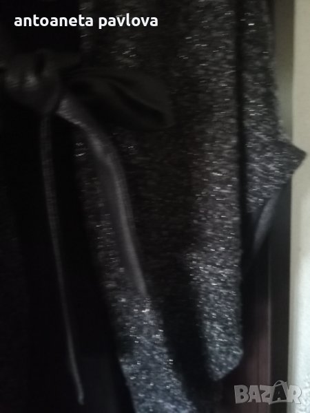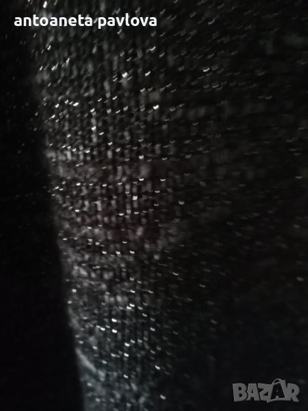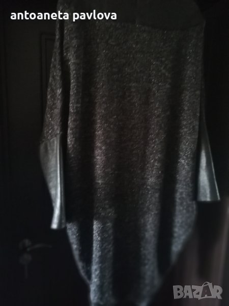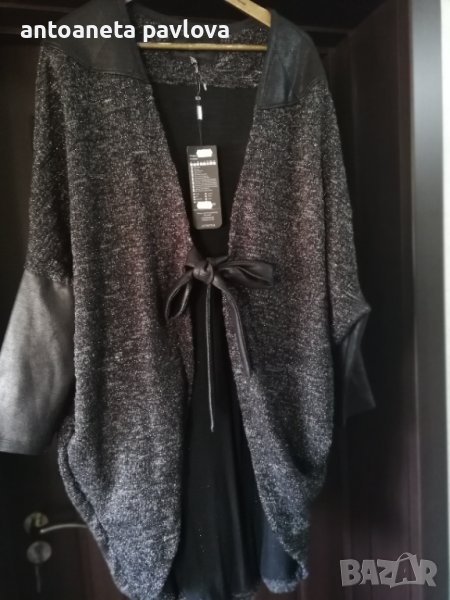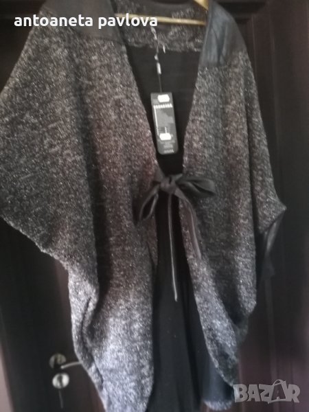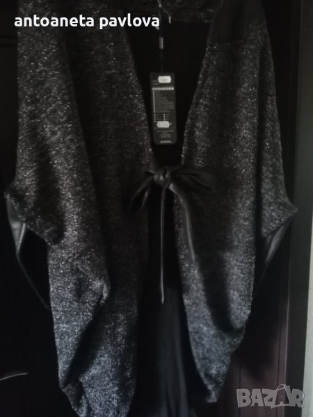 Красива дълга жилетка с ламе .Връзки ,маншети и платка в горната част от промазан плат имитиращ кожа .Ръкавът е прилеп .Подходяща както за повод така и за ежедневието .Стои свободно .Задама с гр об до 135см