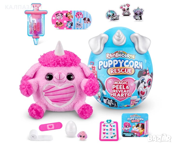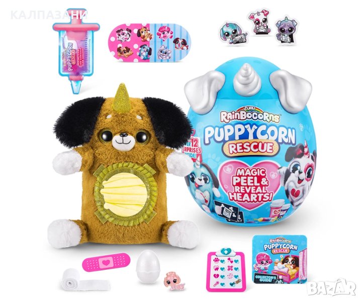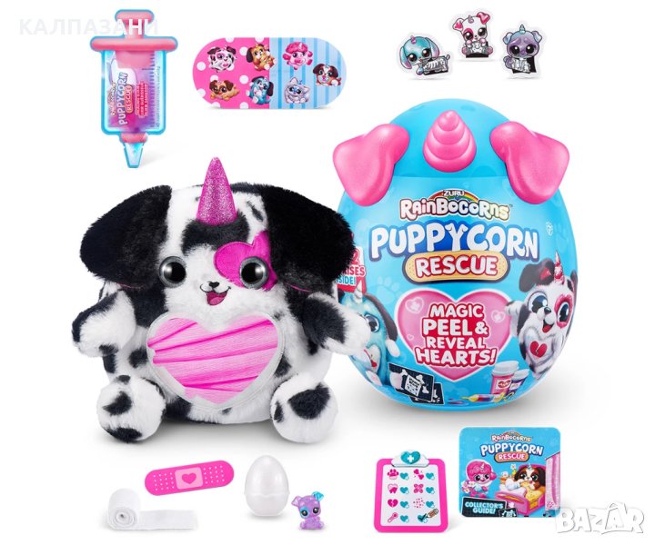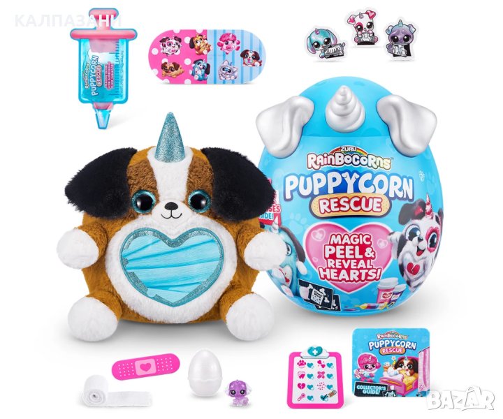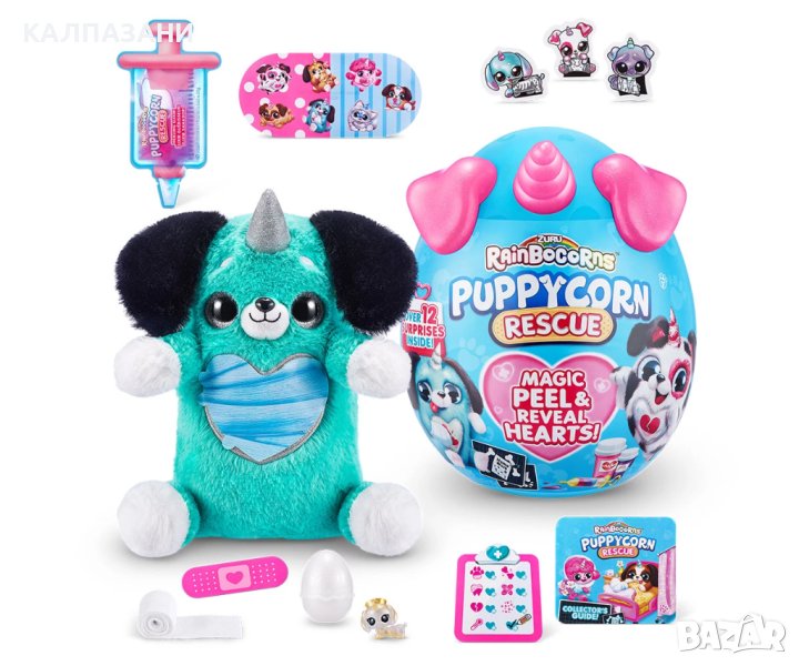 Гушкайте тези космати приятели, за да ги върнете към здравето с Rainbocorns Puppycorn Rescue! В Рейнбовил някои от кученцата не се чувстват добре и се нуждаят от вашите прегръдки и целувки, за да ги спасите! Над 12 изненади за откриване: Помогнете на милите кученца от Рейнбовил да оздравеят с Puppycorns rescue! Всяко кученце пациент идва в комплект с Dr Boo-Boocorn, Peel 'n' heal сърце, стикери за лейкопласт, здравен доклад, рентгенови снимки, спринцовка със слуз и бинт! Използвайте изненадите, за да спасите своя Puppycorn! Комбинирайки мистериозно разопаковане, странни изненади и пухкав плюш, Rainbocorns със сигурност ще бъде вашият нов най-добър приятел! Слоевете магия и вълнение никога не свършват! Толкова много нови Rainbocorns се излюпват от Rainboville - кой ще ви се падне? Използвайте сърцето на Puppycorns, за да откриете какво кара вашето Puppycorn да се чувства зле! Тогава се притечете на помощ с прегръдки и целувки, за да спасите вашето кученце! Dr Boo-Boocorns: Всички нови Dr Boo-Boocorns са експерти по здравето на Rainbocorn и са тук, за да ви помогнат да излекувате вашето Puppycorn! Комплектът съдържа: 1x Puppycorn Egg; 1x Puppycorn Plush; 1x Dr Boo-Boocorn; 1x Boo-Boocorn Egg; 1x Puppycorn стикери за лейкопласт; 1x Ръководство за колекционери; 1x спринцовка слуз; 1x изтриваемо сърце; 1x здравен доклад; 1x рентгенови снимки и 1x превръзка.