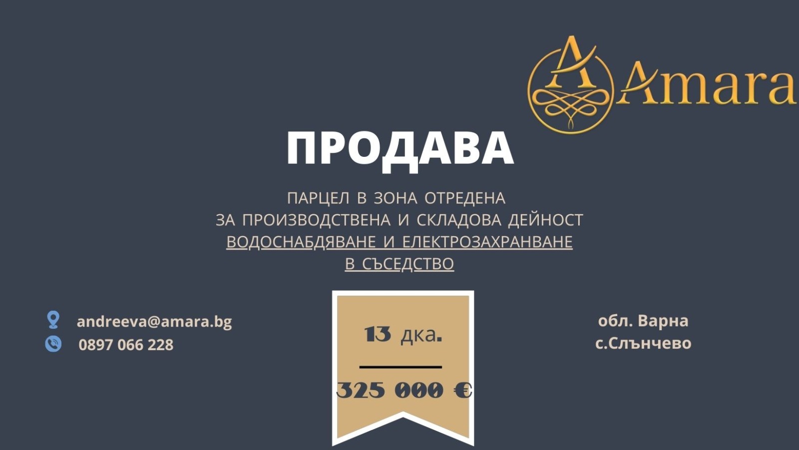 Оферта 1167. Парцел в зона отредена за Промишлено строителство / Предимно производствена, 13 дка, в с.Слънчево, на 15 км. от гр.Варна.