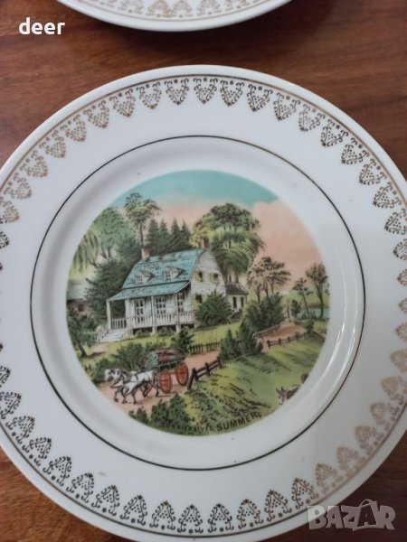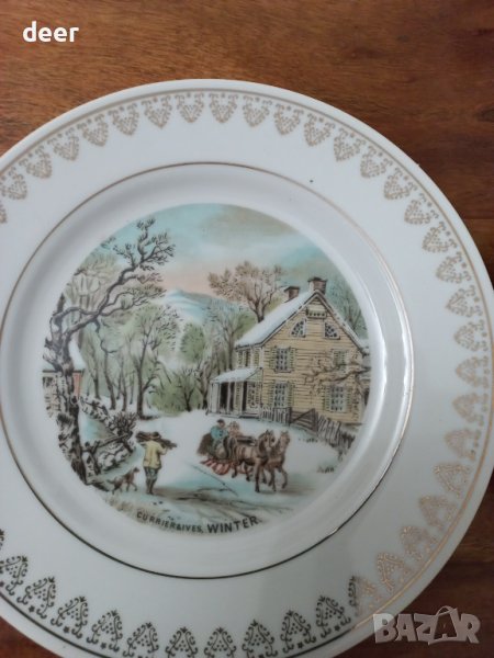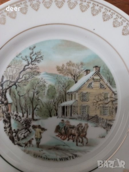 Диам.20см.авторски красиви чинийки с картинки и златен кант
