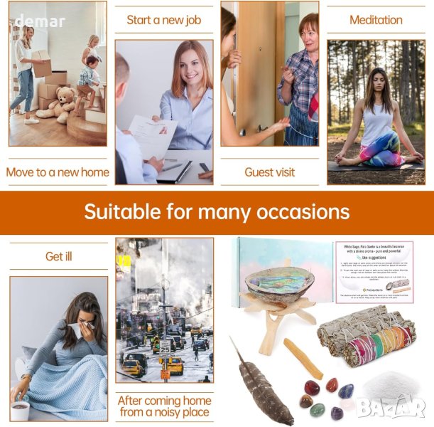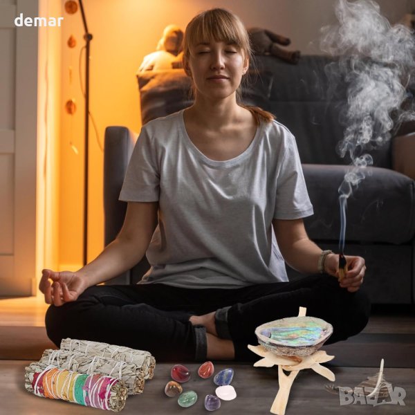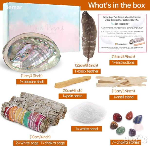 Насладете се на пълния комплект Smudge Kit от Nutgun, включващ 3 снопчета мъдрец, черупка от охлюв, размазващо перо, пръчки Palo Santo, дървена стойка за триножник, седем камъка от чакра и бял пясък за цялостно размазващо пътешествие. Изработени с грижа, първокласните пакети от калифорнийски бял градински чай са почитани заради мощните си лечебни свойства, докато раковината Abalone може да се похвали с естествен седеф и уникални цветове. Ароматните пръчици Palo Santo от Перу с етичен произход допълват изживяването. Идеален за прочистване, медитация или духовно израстване, комплектът съчетава камъни от градински чай, пало санто и чакра, за да създаде спокойна атмосфера. Перфектен за начинаещи и експерти, той включва инструкции за пълноценен ритуал. Независимо дали за вас самите или като подарък, комплектът Nutgun Sage Smudge е с гаранция за удовлетворение, осигурявайки хармония и духовен баланс в живота ви.