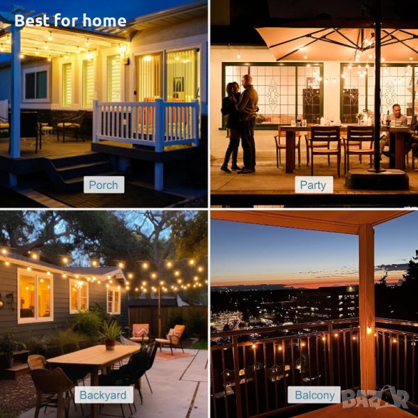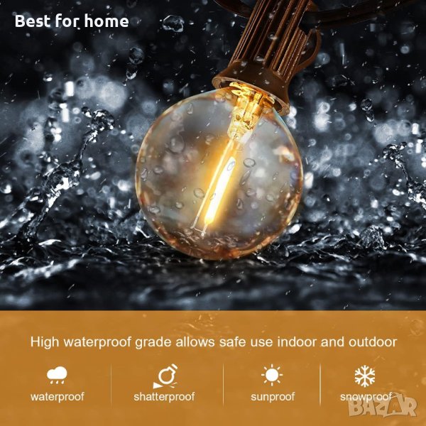 【Устойчива на атмосферни влияния градинска светлина】 IP45 водоустойчив и изолационен материал може да издържи на екстремни температури, слънце, дъжд, вятър, сняг или влажно време. Струните имат специални устойчиви на атмосферни влияния гнезда, които напълно покриват крушките за подобрено уплътняване и живот на светлината на струната.