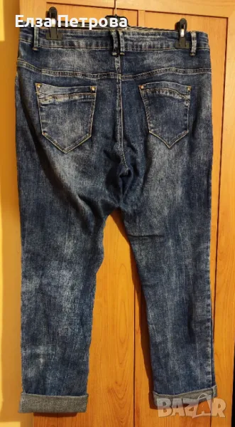 Over size: 3XL÷4XL; БГ № 52÷54. Дължина от талията до четала 26 см и от четала до долу 96 см, обиколка на бедрото 64 см, обиколка на прасеца 40 см. Много удобни и меки, с 2 функциониращи предни и 2 задни джоба. Много запазени, не личи, че са носени, като нови. Продавам ги защото не ми стават. Изпращам чрез Еконт/Спиди до офис/до адрес посочен от получателя, с 10% отстъпка от доставката при доставка с Еконт, преглед и тест преди заплащане.