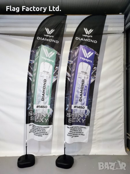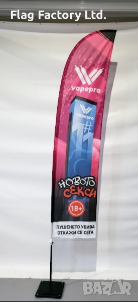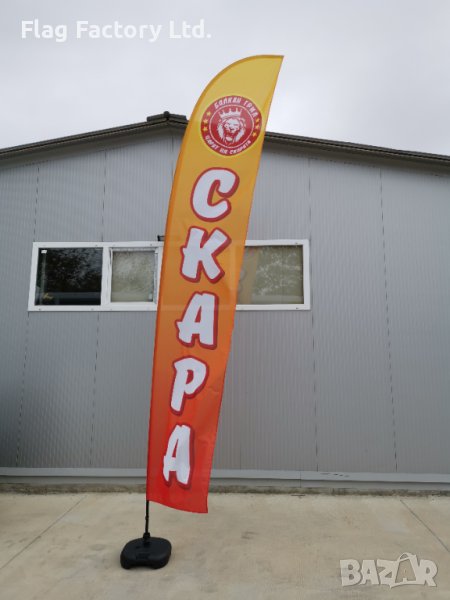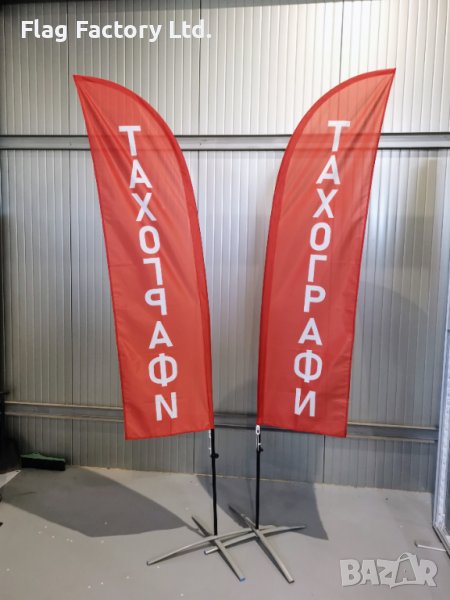 знамена- Размери до 450см височина на знамето, с пилона над 500см.