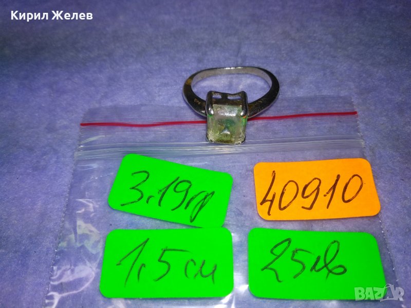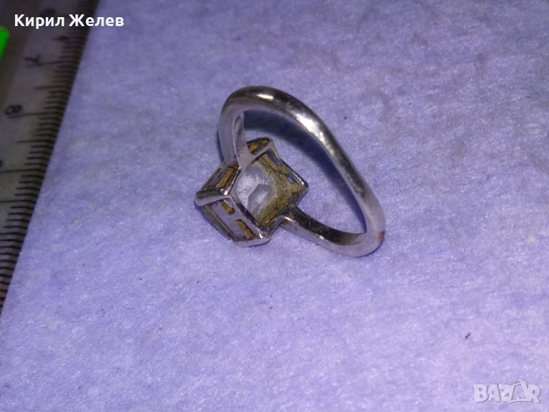 СТАР СРЕБЪРЕН РЕТРО СТИЛ ПРЪСТЕН СРЕБРО 925 с БЯЛА ПОЗЛАТА и ПЛАНИНСКИ КРИСТАЛ 40910
