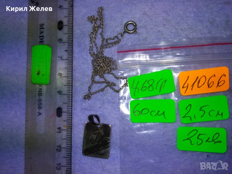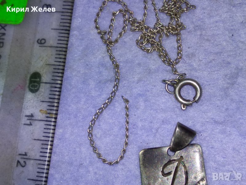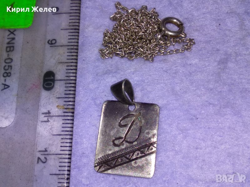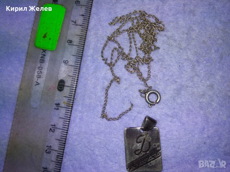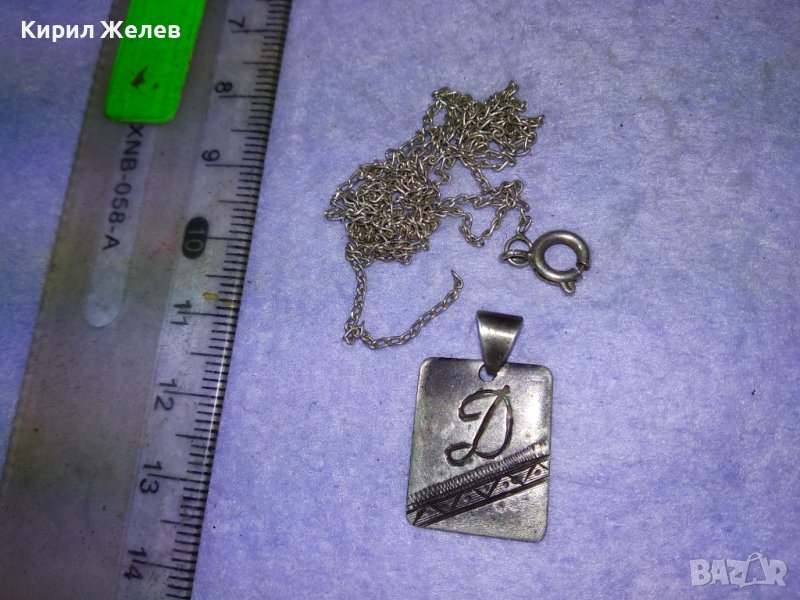 СТАРИНЕН СРЕБЪРЕН МЕДАЛЬОН РЪЧНО ГРАВИРАН с БУКВА - Д и СРЕБЪРНА ВЕРИЖКА с НУЖДА от ЛЕК РЕМОНТ 41066