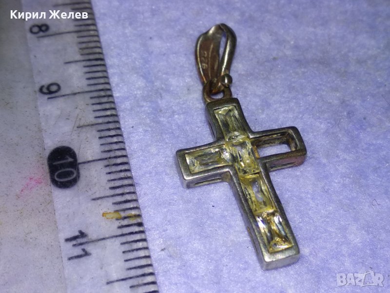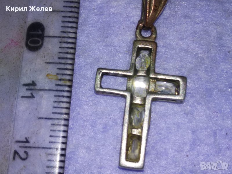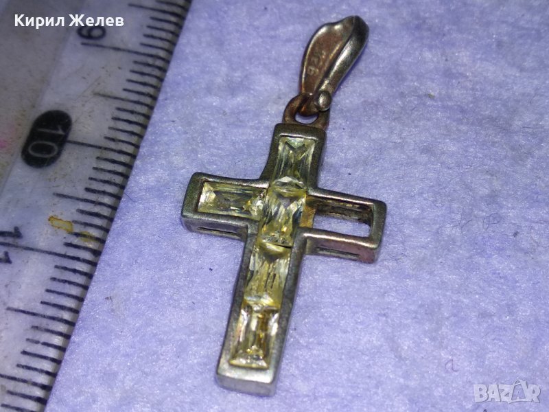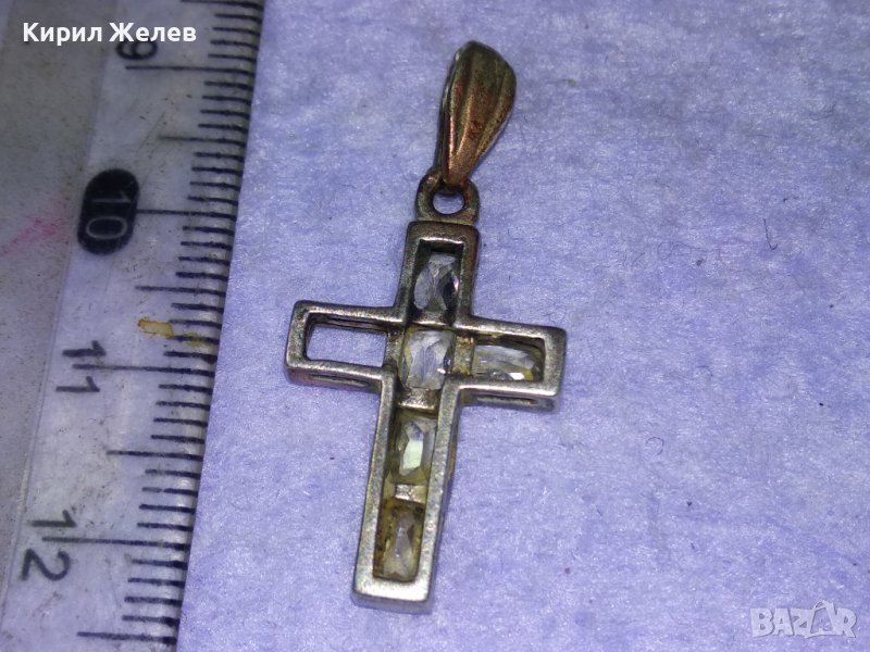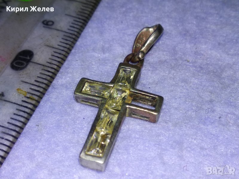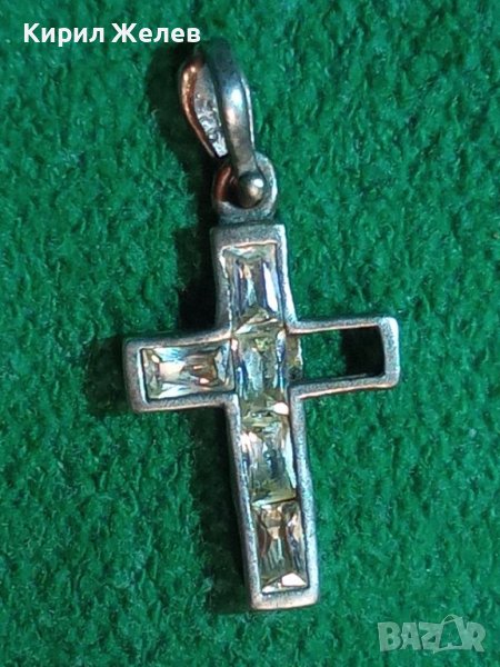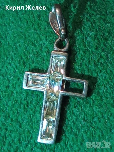 СТАРО СРЕБЪРНО КРЪСТЧЕ СРЕБРО 925 с ФАСЕТИРАНИ ИСКРЯЩИ КРИСТАЛИ Едното КАМЪЧЕ ЛИПСВА! 40508