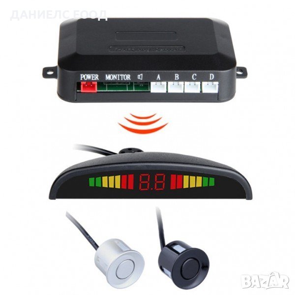 Безжичен Парктроник за автомобил с 4 сензора, LED дисплей и звукова сигнализиция.