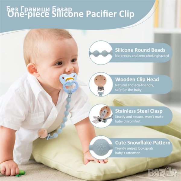 - Универсално Приложение: Подходящ за повечето видове залъгалки и гризалки, лесно се закрепва към дрехи и аксесоари.