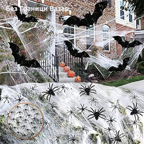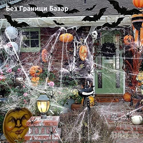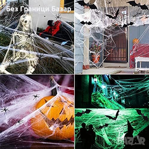 Нова Декорация за Хелоуин 80 г паяжина с 20 бр. фалшиви паяци 16 бр. 3D прилепи