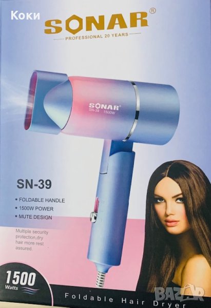 Мощният и компактен сгъваем Сешоар за коса SONAR SN-39 ви позволява бързо и ефективно сушене на вашата коса и помага за достигане на по-голям обем на прическата!