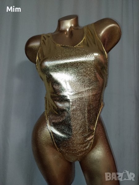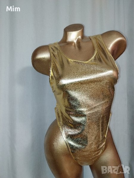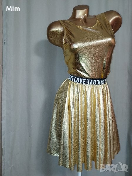 Боди и пола имитиращ лак в златисто пилота в талията е с широк черен ластик с лого 30 до 44 см едностранно надолу се разширява, дължина 43 см.Нови без хартиен носител.