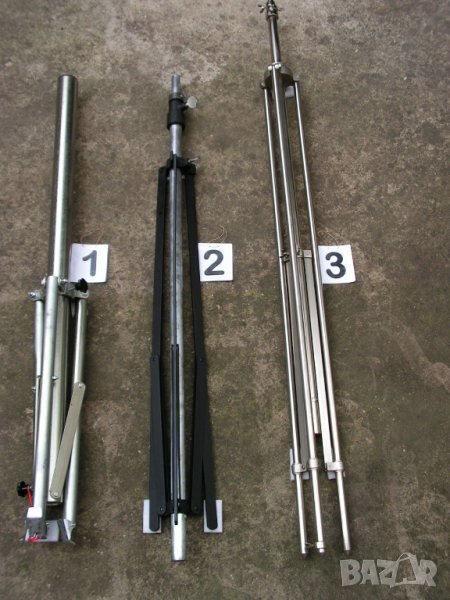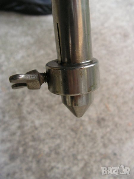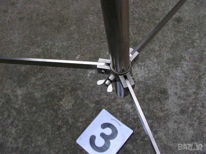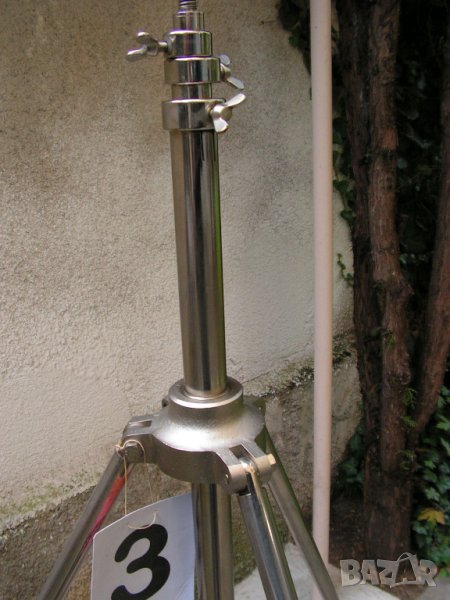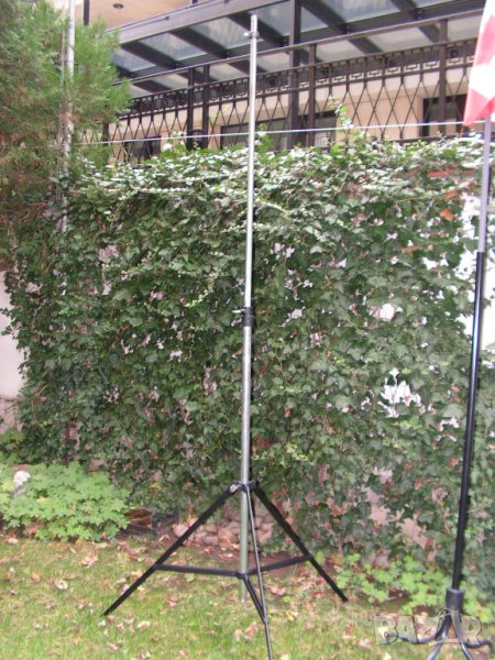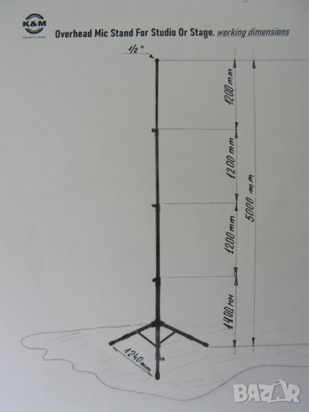 Предлагам изключително рядка, неразличима от нова стойка за професионално студио на фирмата Konig & Meyer / К&M / от периода, когато германците живееха в две Германии. Хубавите неща, които се продаваха в нормалния, конкурентен свят се правеха в по-добрата Германия –Западната. Става дума за стойка произвеждана през 70- те години на миналия век и станала основна стойка за овърхед микрофони на студията и залите за записи по света. Като казвам студия , нямам в предвид гараж облепен с кори за яйца пръснати в студийно черно и апаратна уютно сгушена в съседния бивш кокошарник. Стойката е напълно универсална , телескопична с 3 подвижни тръбни пръта , дебело хромирана с уникалната максимална височина от 5000 мм което си е 5 /пет / метра. Минималната височина, при макс. отворена основа е 1400 мм. Това е напълно универсална стойка. Спокойно можете да потърсите в мрежата неин днешен аналог. Няма да намерите и за това е толкова