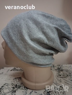 Зимна мъжка шапка с висящ ефект. Шапката е удължена и се носи изтеглена назад. Изработена е от памучен трикотаж, като отвътре е подплатена. Свободната кройка я прави подходяща за спортни натури.