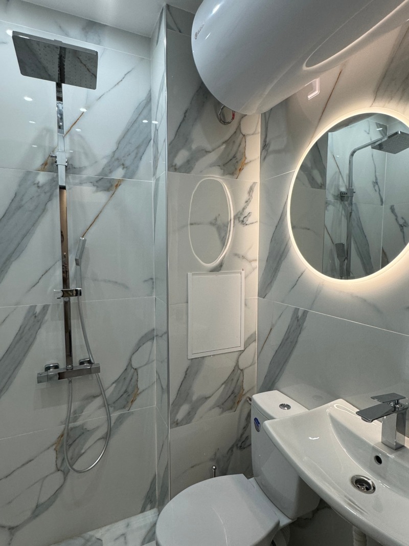 Двустаен, луксозно обзаведен апартамент в комплекс на метри от метростанция 'Княгиня Мария Луиза', спирка на трамвай, тролей и автобус, детска градина и болница.