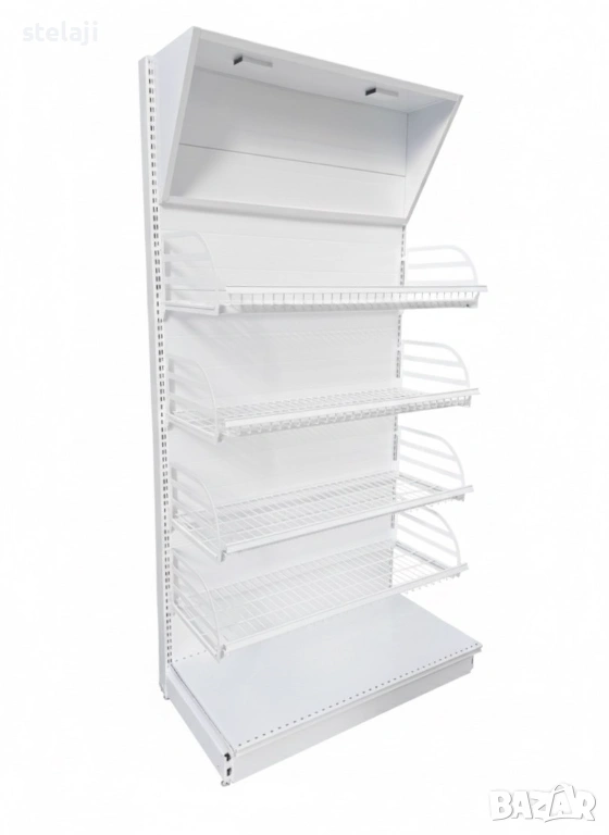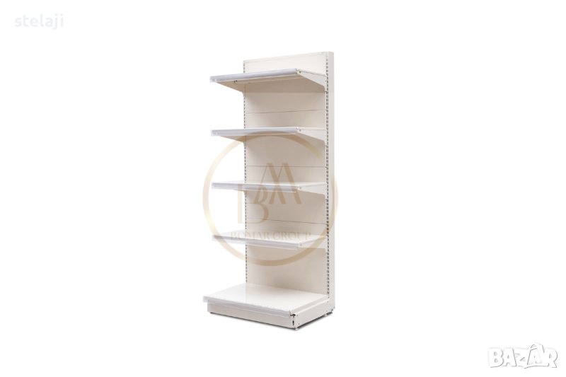 Професионален крайстенен стелаж с плътен гръб, идеален за всякакъв тип търговски обекти. Високо качество на изработка, голяма стабилност и чист бял цвят (RAL 9016).
