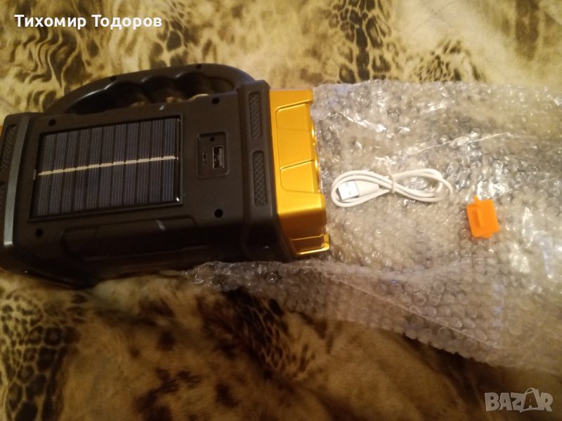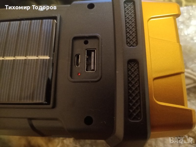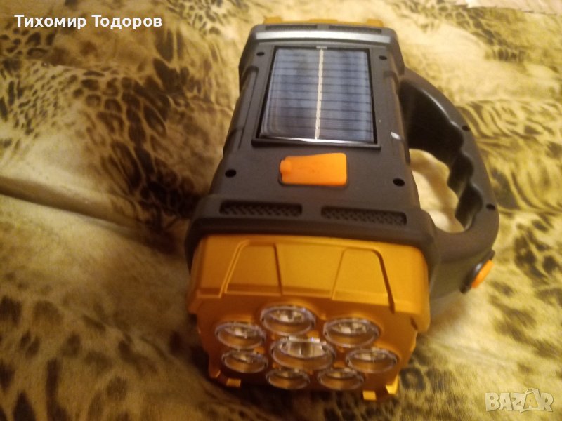 Лек и удобен Водоустоичив Лед Фенер, Micro Usb зареждане,NiMh батерия 2400mah,10 вата консумация ,осветеност 3800 Лумена.Възможност за зареждане от слънцето чрез вградения соларен панел,също така може да си зареждате телефона от него като го използвате за Power Bank.Подходящ за лов риболов,къмпинг.Налични два цвята червен и оранжев.
