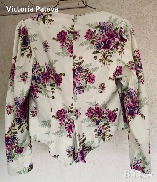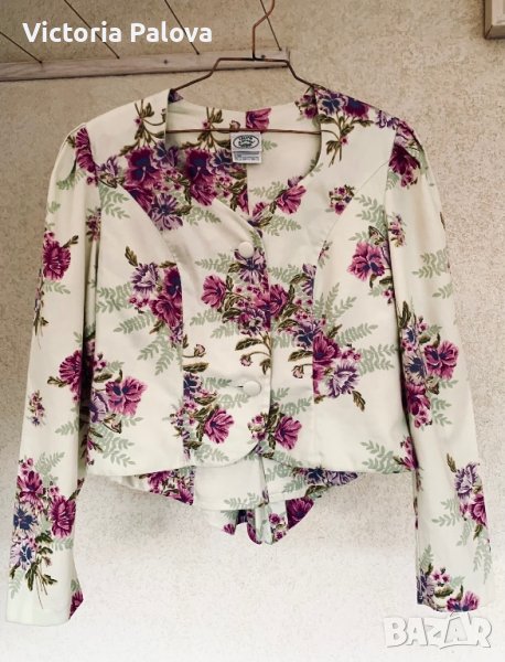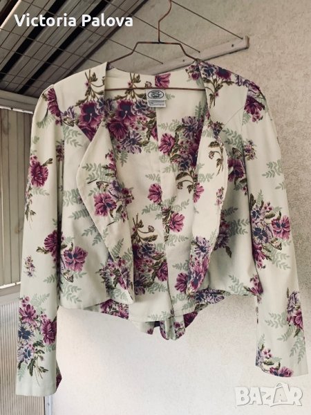 Много красиво стилно нежно елегантно сако, vintage, особено актуално днес. Стилът на LAURA ASHLEY е бил любим стил на принцеса Диана - изискан и изтънчен. Рамо - 42см, има леки подплънки, ГО - 50см, дължина отпред - 50см, отзад - 61см, талия - 45см, ръкав -62см.