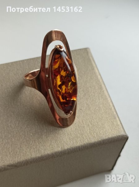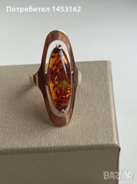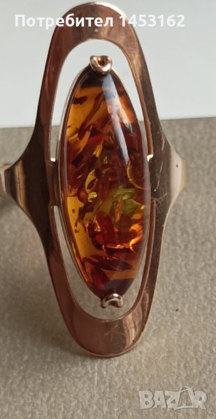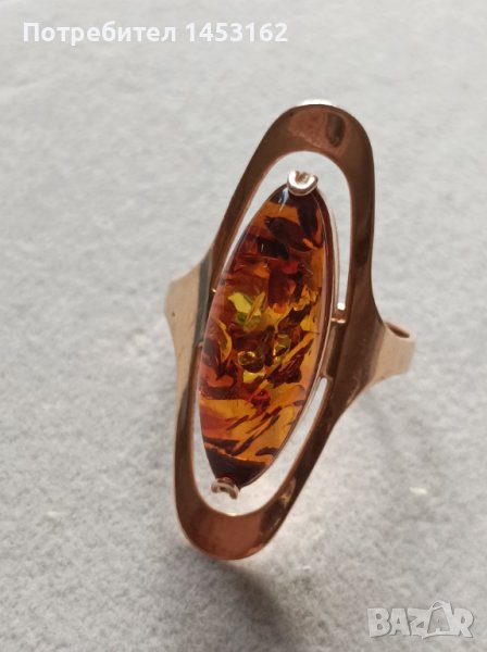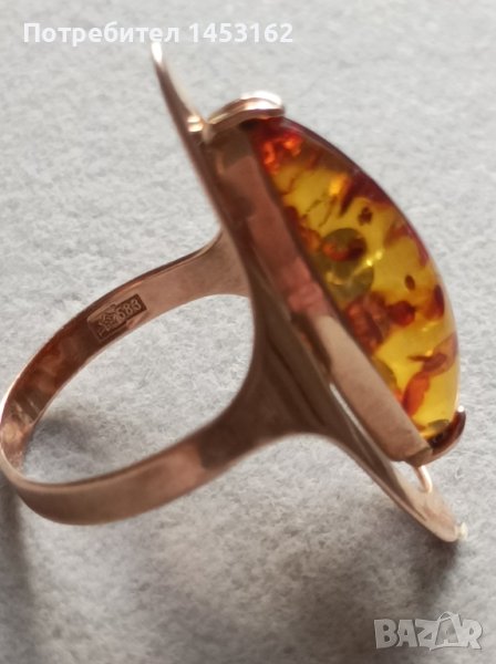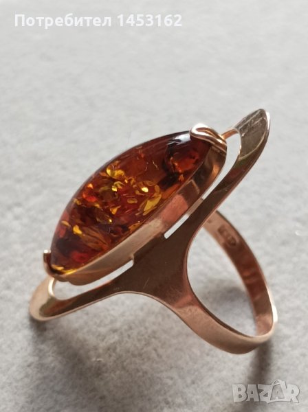 Златен руски пръстен с естествен кехлибар → Обява 43240994