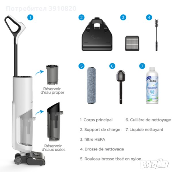 С Midea X8 можете лесно да направите подовете в дома си блестящо чисти. С помощта на това многофункционално устройство можете лесно да измиете и вакуумирате всички видове повърхности - от плочки до панели. Прахосмукачката се отличава с мощност от 220 W, а времето ѝ за работа с едно зареждане достига 35 минути. Продуктът автоматично регулира силата на засмукване според степента на замърсяване на пода и предлага функция за самопочистване. Освен това е много удобен за използване и е оборудван с 2 резервоара - за мръсна и чиста вода.