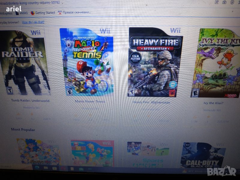 Инсталирах доста игри за Sega Megadrive, и Wii на sd card 32 gb и радостта е пълна. Наличният wifi и безжичен джойстик са удобство. Скоро ще проверя как се справя с филми като плеър. Цена само на тяло от Нинтендо Wii с Мод за игри от HDD, USB, SD Card 50 лв, цена на 32 Gb SD Card с десет игри 30 лв. Цена на ни тендото с джойстика , захранването, антената 100 лв , с картата с игрите демек всичко от обявата 130 лв. Не забравяйте че на 32 гигабайта се събират 10 игри , обикновено са по 3 гигабайта всяка. А sega nega drive са по 20 мегабайта всяка