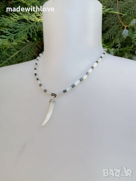 Ръчно изработено колие от полускъпоценни камъни: хематит и седеф., снимка 1 - Колиета, медальони, синджири - 43243214 Ръчно изработено колие от полускъпоценни камъни: хематит и седеф., снимка 2 - Колиета, медальони, синджири - 43243214 1/2