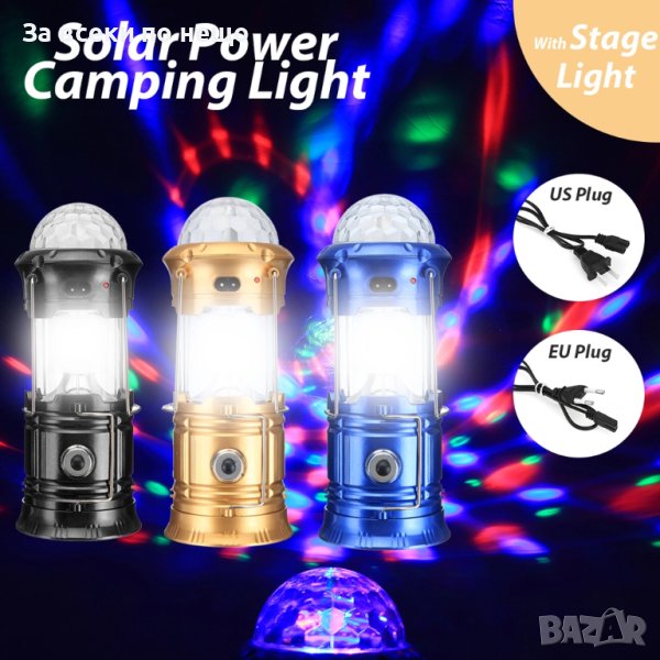 3 режима на осветяване: Прожектор, Къмпинг лампа и Диско светлини