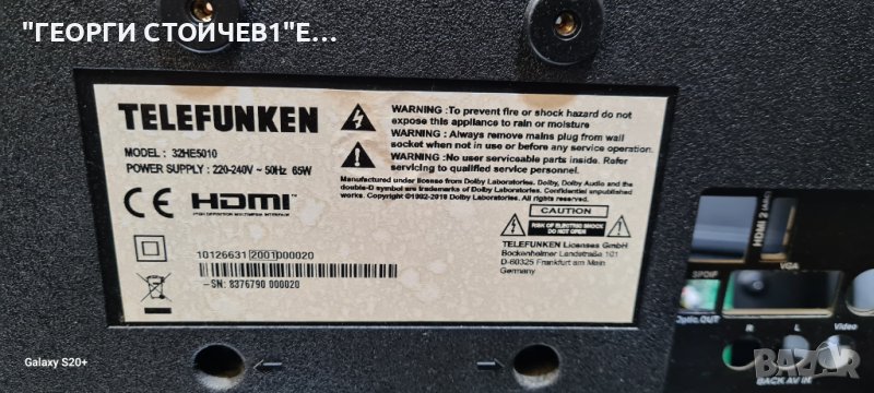 TELEFUNKEN 32HE5010 С ГАРАНЦИЯ 1г. 17MB211S 17IPS62 LSC320AN10-H03 → Обява 43244238