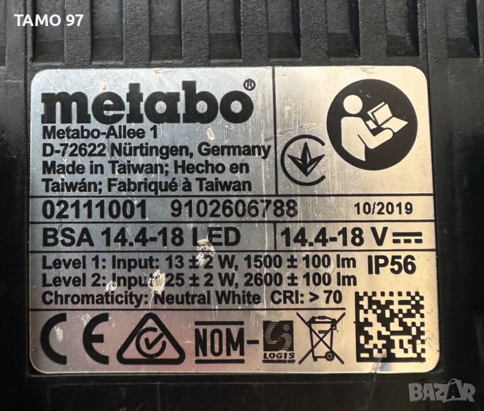 Продавам акумулаторен лед прожектор на марката метабо в добро визуално състояние и работи отлично, тайванско производство внос от Франция. Прожектора работи с 14.4V и 18V литиево-йонни батерии. Обявената цена е за само тялото без батерии и зарядно. При желание на клиента може да се добави и батерия 18V 1.5Ah- 45лв. / 18V 2.0Ah-55лв или 14.4V 4.0Ah-80лв. Пращаме с опция преглед и тест с куриерска фирма еконт може и лично предаване за гр. Шумен.