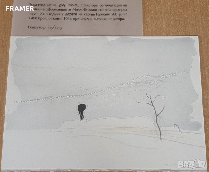 Акварела е оригинал 20/100 броя от книгата с ръкописи и текстове "Ей там". В комплект с книгата.