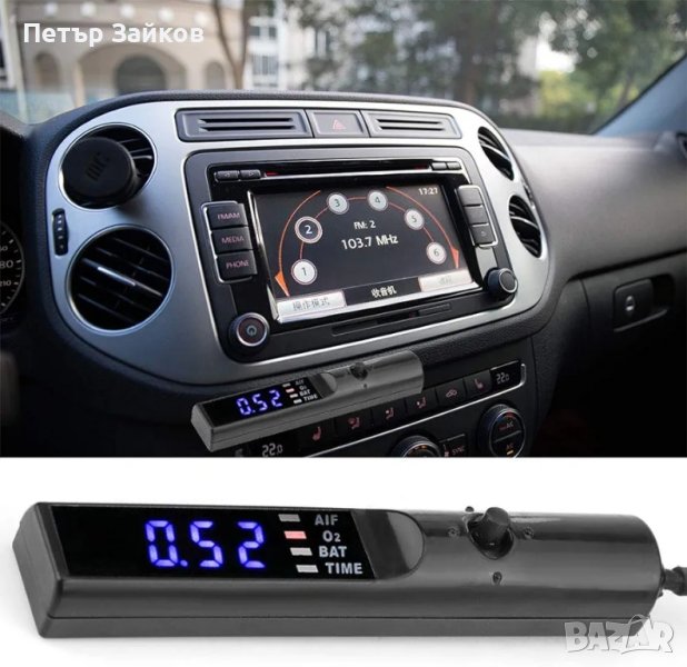 Приложение: Подходящо за всички автомобили с импулсно захранване 12 волта. Снабден с английски инструкции за лесен монтаж. Може да показва напрежение, съдържание на кислород (O2) и съотношение въздух-гориво (A/F).