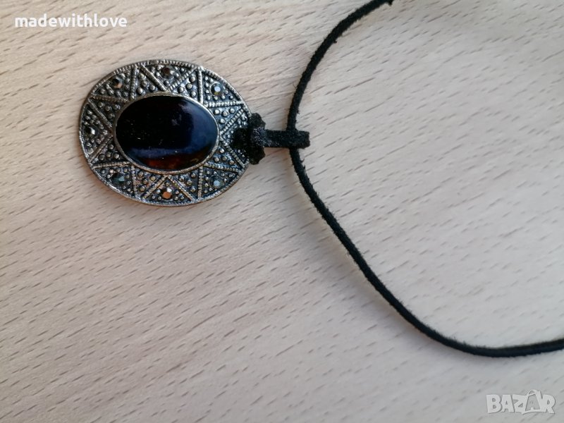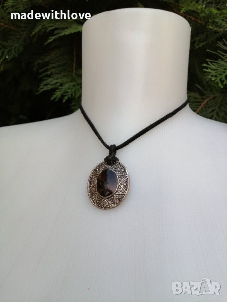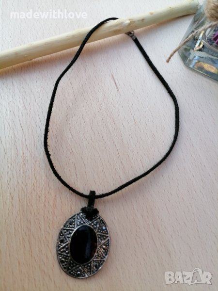 Колие сребристо с каишка от естествена кожа. → Обява 43245508