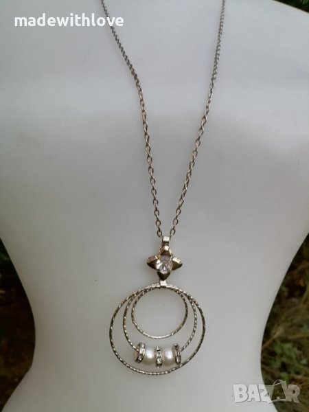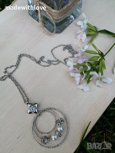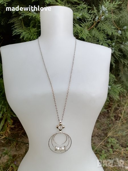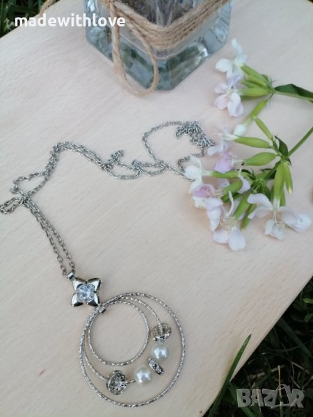 Сребристо колие със седеф и цирконии. → Обява 43245744