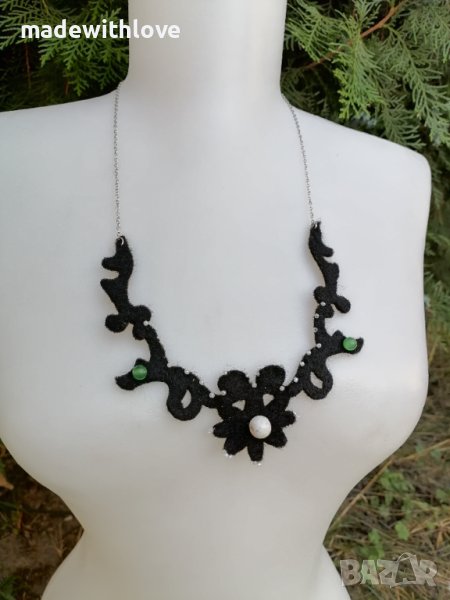 Авторски бижута, ръчно изработено колие от филц, полускъпоценни камъни авантюрин, седефени мъниста.