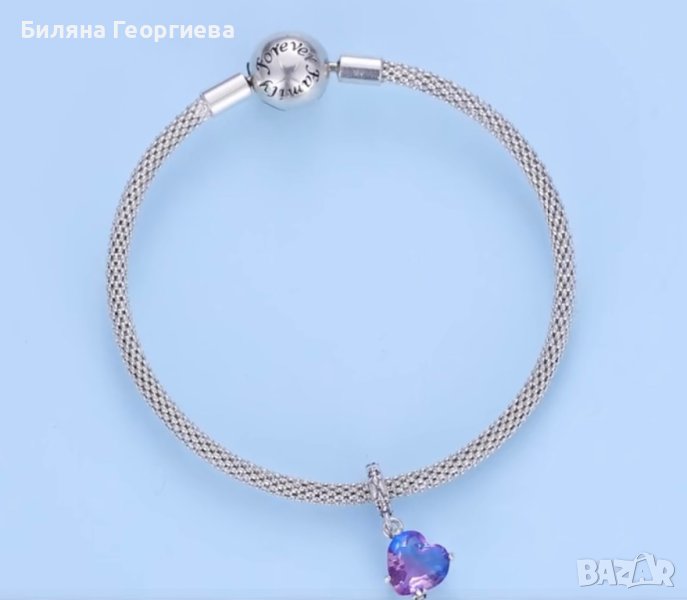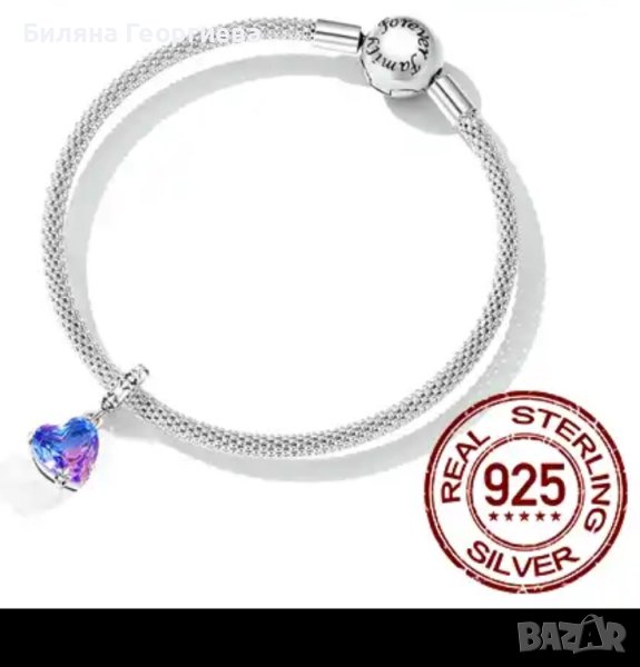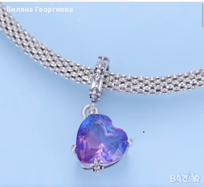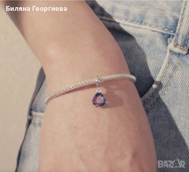 Сребърен талисман за гривна Пандора кристално сърце в лилаво, Модел 054 → Обява 43246486