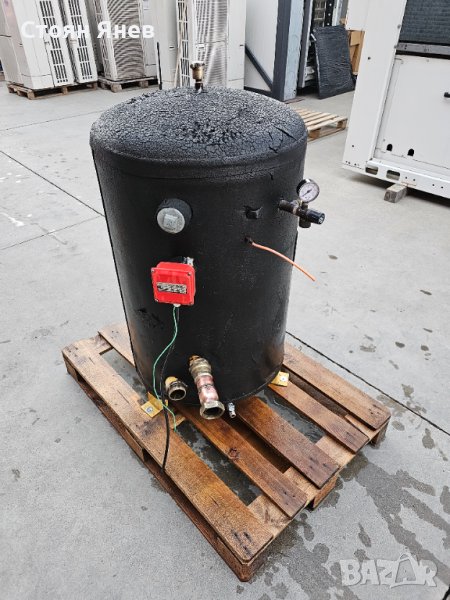 Снабден с обезвъздушител , манометър , обезопасителен клапан , 6 KW нагревател и холендрово присъединяване - на 2 цола