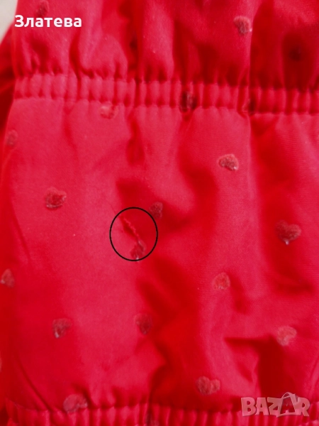 Има малка забележка - зашито на ръкава, около 1 см е, приложила съм снимка, и някои от самите сърчица са се поизтрили при носенето, в снимките се вижда, затова го пускам на символична цена