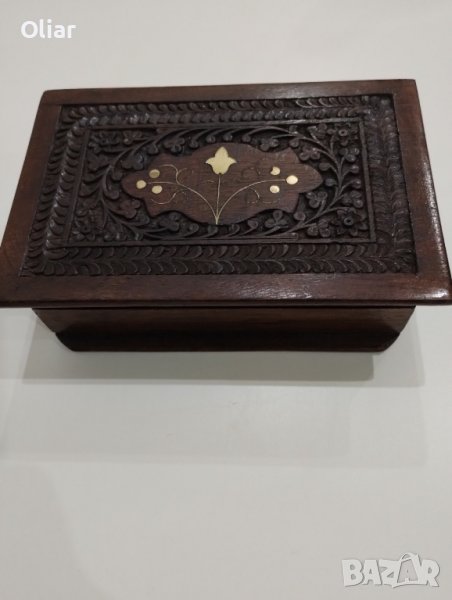 2. Средна кутия. Чудесна дърворезба с инкрустирани в центъра нежни листенца от метал.