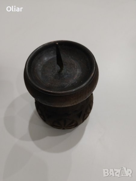 4. Много различен малък свещник от тъмно дърво. Метална горна част. Висок 10 см. . Цена 24 лв.