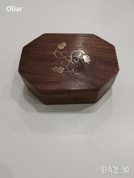 3. Малка кутия за бижута. Дърво с инкрустация от метални листенца.