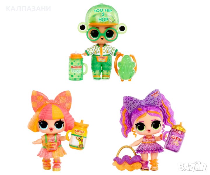 LOL Surprise се обедини с марката желе Haribo, за да създаде кукли, вдъхновени от любимите ви сладки! Всяка кукла има уникален стил, който е още по-апетитен, за да пасне на всяка закуска. Колекционерските кукли LOL Surprise с модни прически, дрехи и много детайлни аксесоари са перфектната играчка и комплект за игра за деца на възраст от 4 до 7 години и по-големи момичета и момчета, осигуряващи часове на творческа игра. Като подарък за рожден ден и подарък за всеки специален повод, куклите осигуряват часове социално забавление с братя и сестри и приятели!