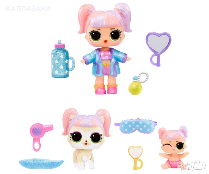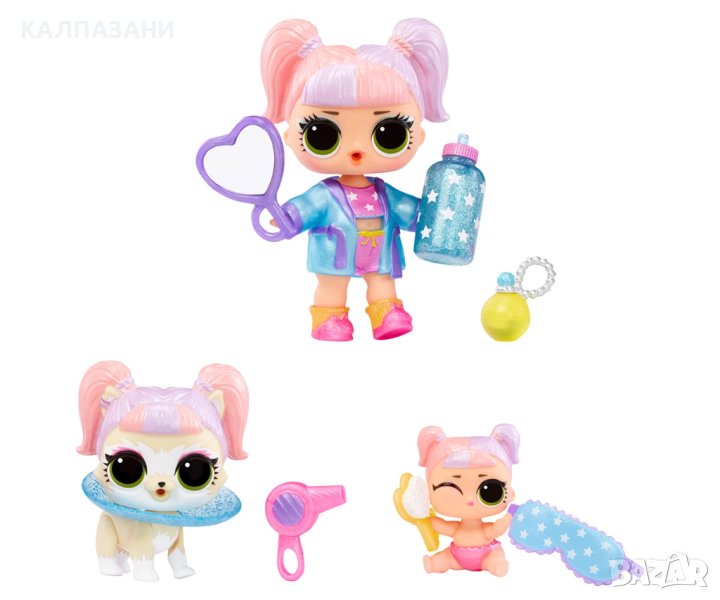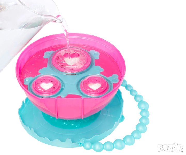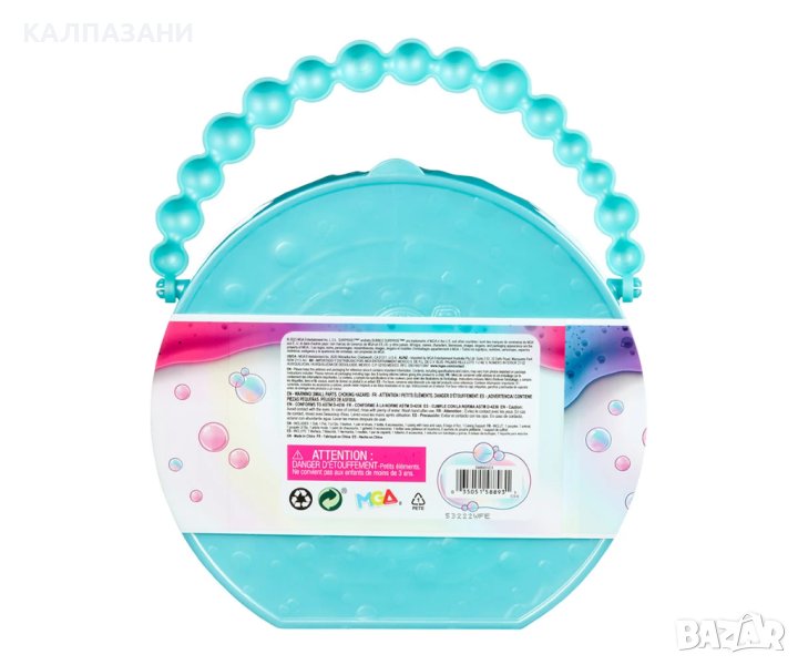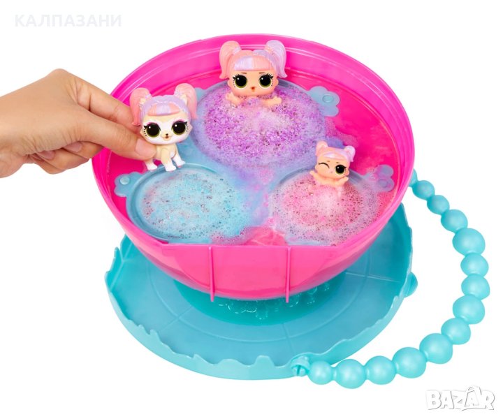 Представяме ви LOL Surprise Bubble Surprise Deluxe! Тези кукли са готови да плуват в невероятното море от цветни мехурчета, които ВИЕ създавате! Просто налейте вода във всяко от сърцата, след това се отпуснете и гледайте как блестящите реакции на мехурчета се променят в 3 различни цвята, разкривайки 3 кукли с ограничено издание за най-голямото парти с балончета! Всяка кукла има водна изненада! Нахранете Bubbly Gurl и Bubbly Puppy, за да разберете дали плюят, плачат или дрънчат. Изкъпете Lil Bubbly Gurl във вода, за да видите промяната на цвета й! Всяка кукла има уникален стил с блестящи детайли и аксесоари. Използвайте топла вода за най-добри резултати! Попълнете вашето семейство Bubble Surprise с LOL Surprise Bubble Surprise кукли, домашни любимци и Lil Sisters! Колекционерските кукли LOL Surprise със стилни прически, забавни за обличане тоалети и много детайлни аксесоари са перфектна играчка и комплект за игра за деца от 4 до 7 години и нагоре момичета и момчета за въображаема игра на преструвки! Като подарък за рожден ден и подарък за всеки специален повод, куклите осигуряват часове на социална игра с братя и сестри и приятели!